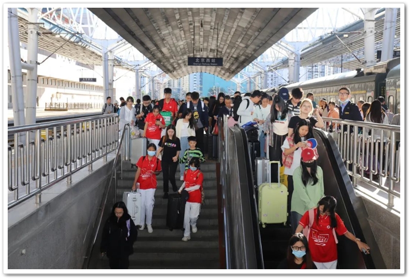 9月30日上午,北京西站,188名正源师生分乘Z2、T146两趟列车陆续抵达。