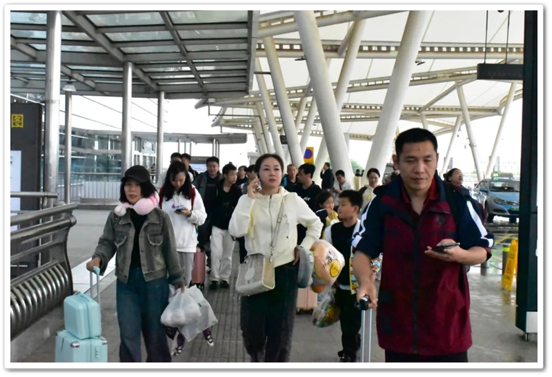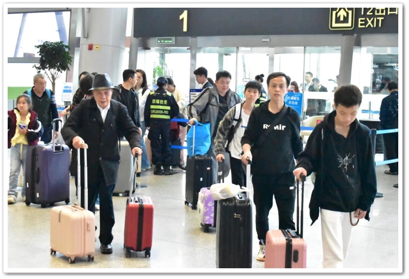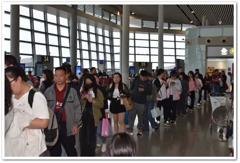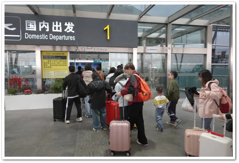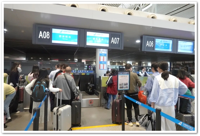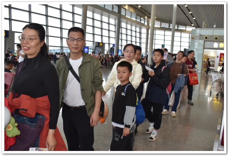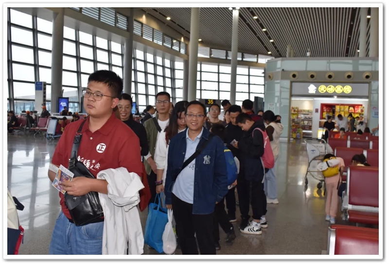 第二批次出发的教师们更为幸运。上午九点上大巴,中午时分昭山服务区吃过随车携带的正源盒饭,下午一点多就抵达了长沙黄花机场。在机场里,领取登机牌、托运行李箱、安检候机,一切有条不紊。