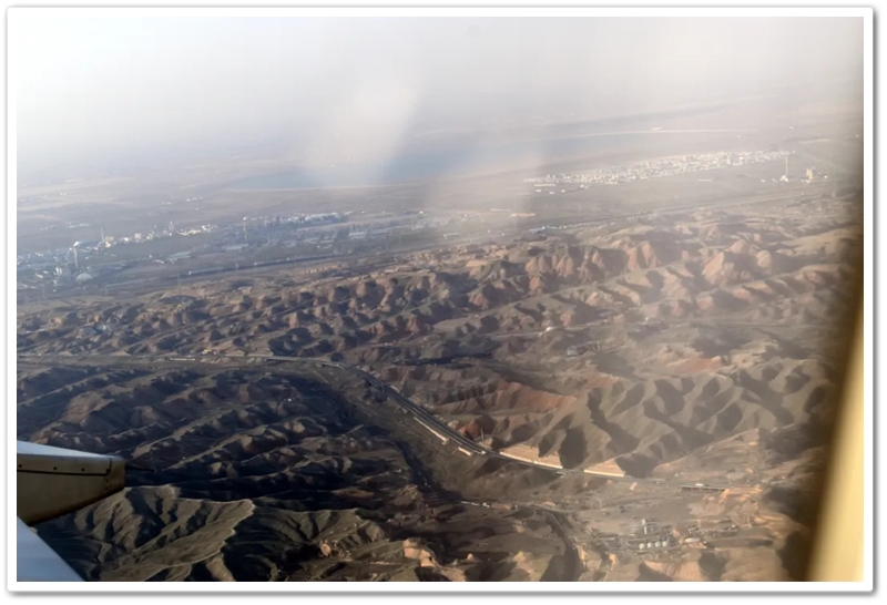 临近七点半,飞越近万里,窗外已是天山景色。万里高空缓缓滑至乌鲁木齐上空,穿破云层,俯瞰大地,只见沟壑纵横,雪山连绵,一幅壮阔的景象展现在眼前。新疆,这个遥远而神秘的地方,正在慢慢揭开它的面纱。