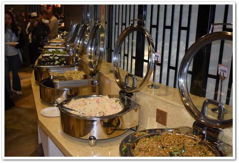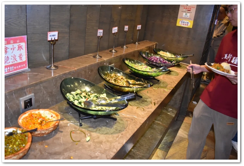 酒店的自助早餐因当地忌讳猪肉,牛羊肉成本又高,多是蔬果、面点等素菜。但胜在种类繁多,蔬果水灵,面点劲道,搭配上清爽的小菜,别有一番风味。