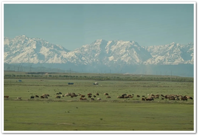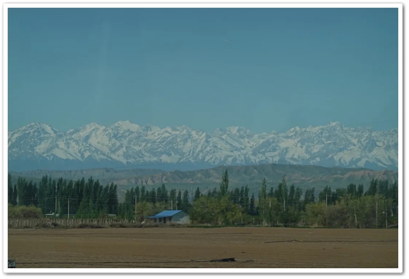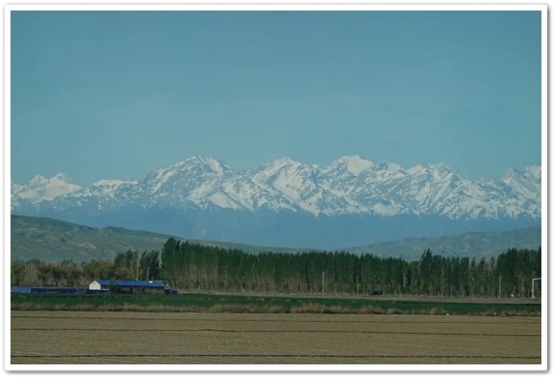 不过,“最美的风景在路上”这句话,用在新疆,实在是再合适不过。一路上,天山山脉绵延不绝,车窗外掠过雪山、戈壁、草场、麦田、棉田,景致变幻无穷,倒也不觉得车程漫长。