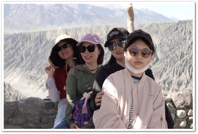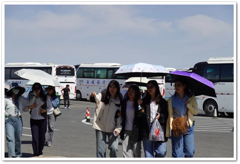 导游是在新疆建设兵团长大的,对沿途的风物与人文风情熟稔于心。她一路娓娓而谈,讲起林则徐和左宗棠在新疆的行踪与渊源,聊起儿时捡棉花挣零花钱的趣事,绘声绘色。兴致来了,她还哼起当地的童谣,老师们也跟着应和,车厢里歌声、欢笑声此起彼伏。想象中会是漫长枯燥的四五个小时车程,也变得轻松愉快起来。