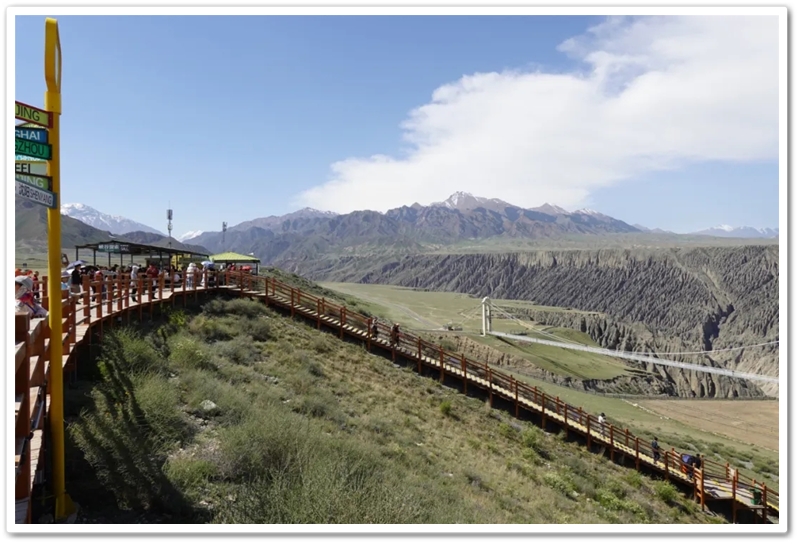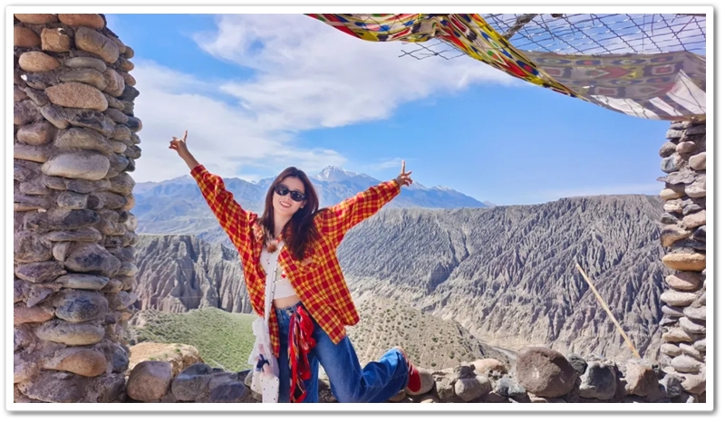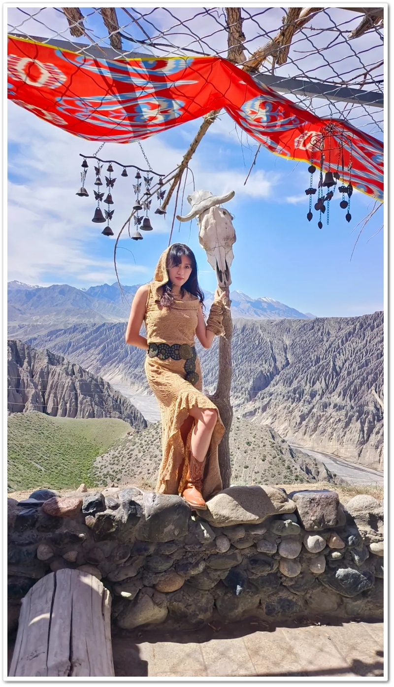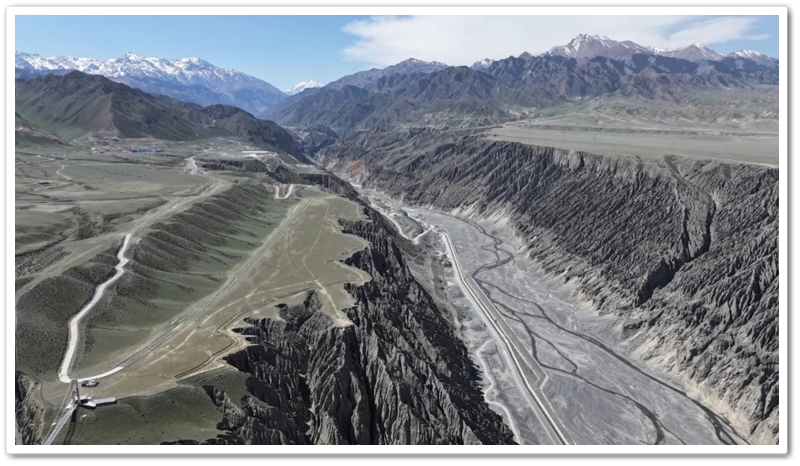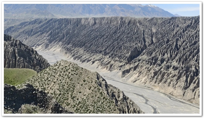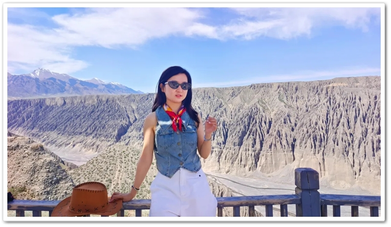 吃过当地特色的牛肉丸子汤和牛肉饼,再驱车二十分钟,终于到了心心念念的独山子大峡谷。远远望去,那峡谷像是大地被撕开的一道口子,沟壑纵横,气势恢宏。崖壁上密布的流水切沟如刀削斧劈般险峻,在阳光映射下色彩斑斓交织成画。极目远眺,雪山在云雾中若隐若现,与峡谷相映成趣。这奇特的地貌,像是大自然用鬼斧神工精心雕琢而成,让人不禁感叹造物主的神奇。