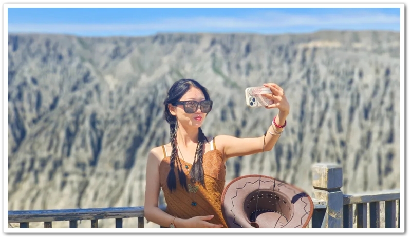 今日行程的首站,是距乌鲁木齐两三百公里外的独山子大峡谷。独山子以自然奇观与工业史诗双重身份屹立于新疆。其峡谷与泥火山展现地球亿万年沧桑,石油工业史则书写了从土法采油到现代化炼化的奋斗传奇。