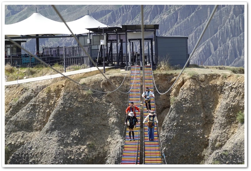 峡谷之上,独库玻璃桥晶莹剔透,走在上面,脚下是百米深的峡谷,犹如漫步云端。峡谷溜索从崖壁上飞速滑过,风声在耳边呼啸,刺激非凡。还有那步步惊心的索桥,脚踏板之间留有间隙,每走一步都让人提心吊胆,却又忍不住挑战自我;悬崖秋千更是惊险,从高处荡出的瞬间,仿佛整个人都要飞进峡谷之中。地轨滑车下山沿着轨道风驰电掣,返程贴着陡坡吭哧吭哧扶摇直上,亦是饶有趣味。