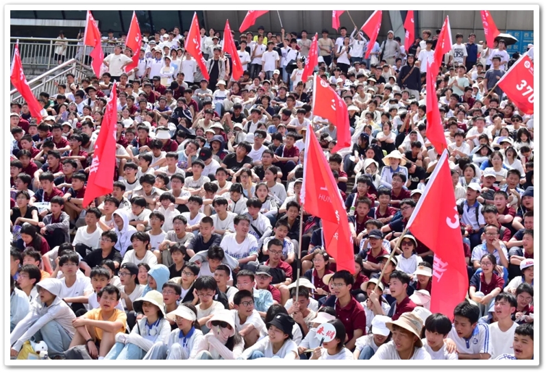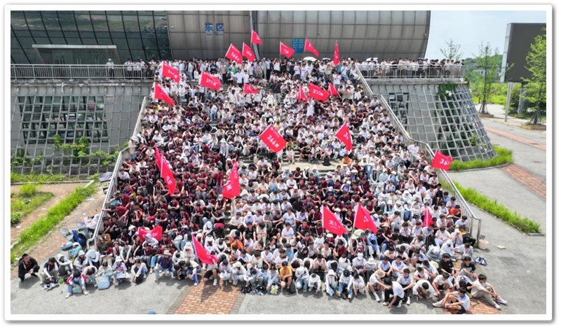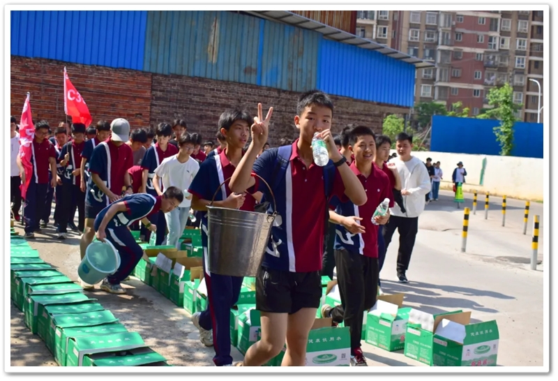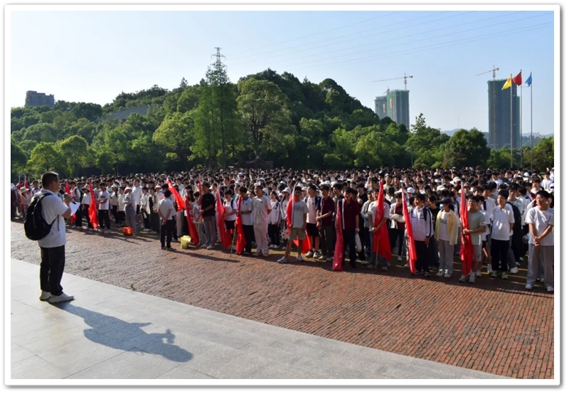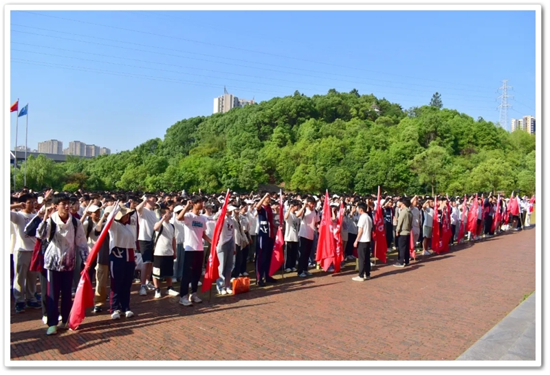 五月,灿烂的晨光照拂万物,如少年的眼眸般清澈明亮,温润的和风举托红旗,如赤子之心般热烈滚烫。5月14日上午7:45,教学楼前广场上已涌动起一片热烈的海洋。正源学校初三年级1300余名师生整装待发,每个人的脸上都跃动着紧张又期待的光芒。