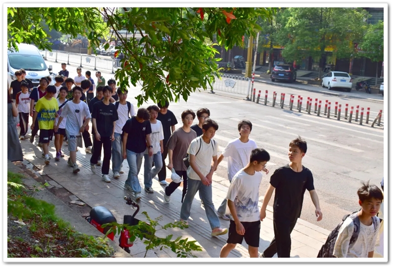 晚上7:42,最后几名学生跨进学校西门,宣告着远足落下句点。食堂氤氲的饭菜香气里,有人边揉着酸痛的腿边兴奋比划:“我们途经铁轨,看到火车呼啸而过!”少年们也终将带着他们的梦想,去到心向往之的远方。热水淋浴冲去满身尘土时,少年们或许懂得了:所谓成长,不过是把看似不可能的距离,分解成一步步向前的脚印——千里之行,始于足下。