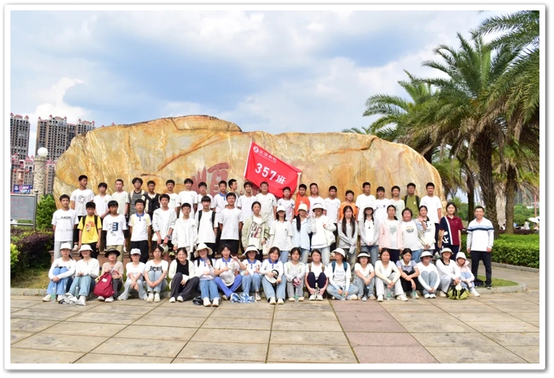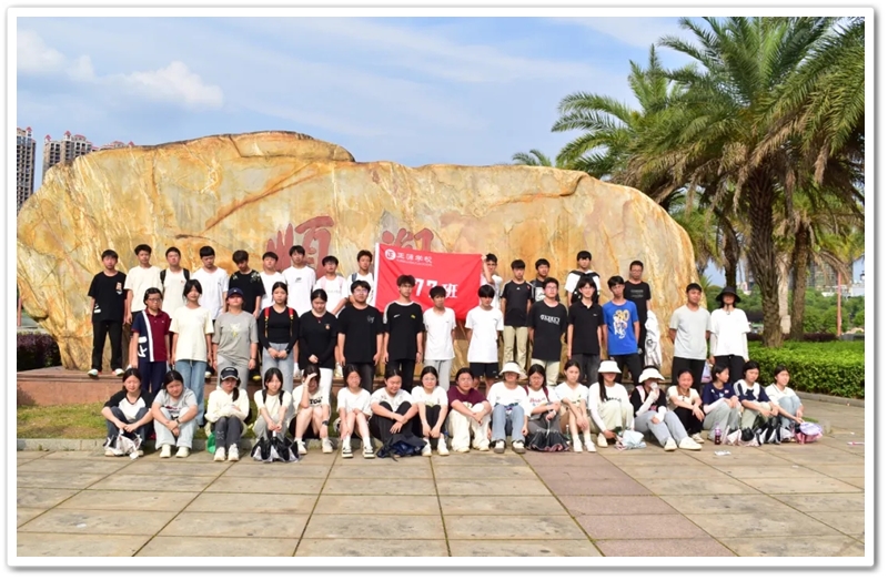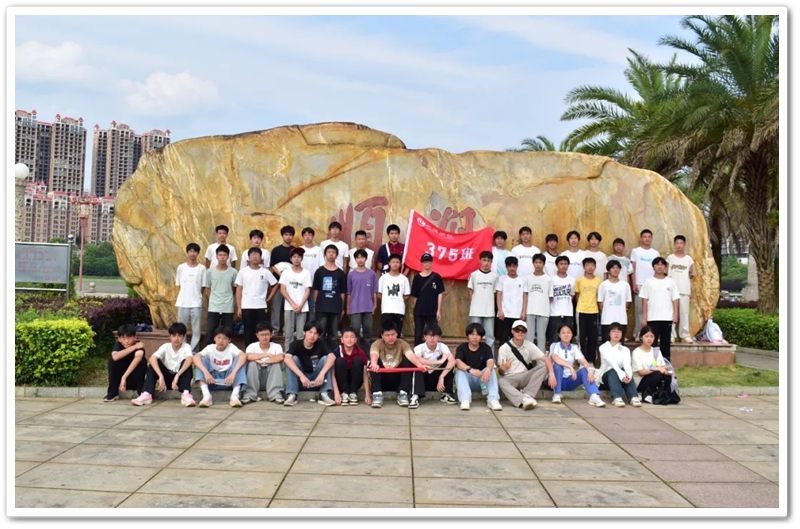 返程途经顺湖公园,各班级在这里休整并展开自由活动。凉亭休整,湖边赏光,树下乘凉,走走停停,队伍最后来到了顺湖公园的石碑——班级合影的打卡地。同学们整顿队伍,欣欣然来到石碑前,高举班旗,齐呼口号,留影独家记忆。