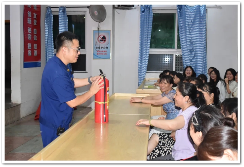 在互动环节,当消防教官随机邀请讲台下的生活老师演示灭火器使用时,该老师动作娴熟,一气呵成完成扯开保险栓、抓取喷嘴胶管、掐住把手等操作流程,这一专业表现令有二十年消防工作经验、亲历两千多场火灾救援的教官惊叹不已。