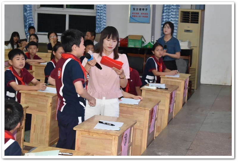 在五年级彭升银老师和梁姿两位老师对比赛规则介绍后,五年级数学擂台赛正式拉开序幕。