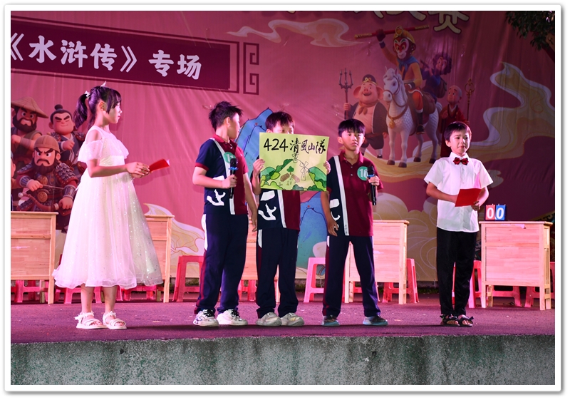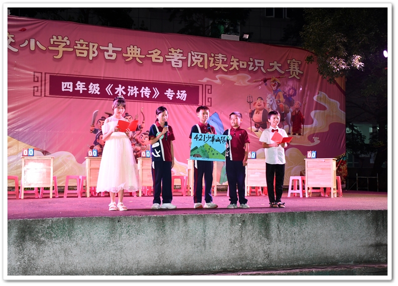 歌德曾言:“读一本好书,就等于和一位高尚的人对话。” 《水浒传》作为中国古典四大名著之一,一部书写英雄史诗与忠义传奇的经典白话章回小说,影响深远。为弘扬国学传统,让名著知识浸润校园,营造馥郁书香氛围,6月23日晚正源,小学部四年级语文组在小学部运动场成功举办了《水浒传》阅读知识竞赛。