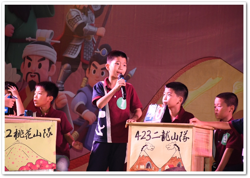 经过初赛(全年级参与)的选拔,24位来自各班前三名的优秀选手脱颖而出,组成8支班级代表队。比赛采用团队积分淘汰制,分三个环节展开:① 三打祝家庄(基础知识) ② 大破连环马(人物关系) ③ 四大征(综合思辨)。