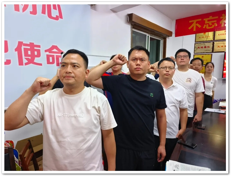 在庄严的氛围中,党员李丰同志带领全体党员面向鲜红的党旗,高举右拳,重温入党誓词。“我志愿加入中国共产党,拥护党的纲领,遵守党的章程……”铿锵有力的誓言回荡在活动现场,表达了党员们对党的无限忠诚和为共产主义事业奋斗终身的坚定决心。每一句誓言都深深烙印在党员们的心中,提醒着他们时刻铭记自己的身份和责任。