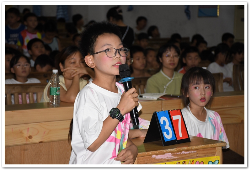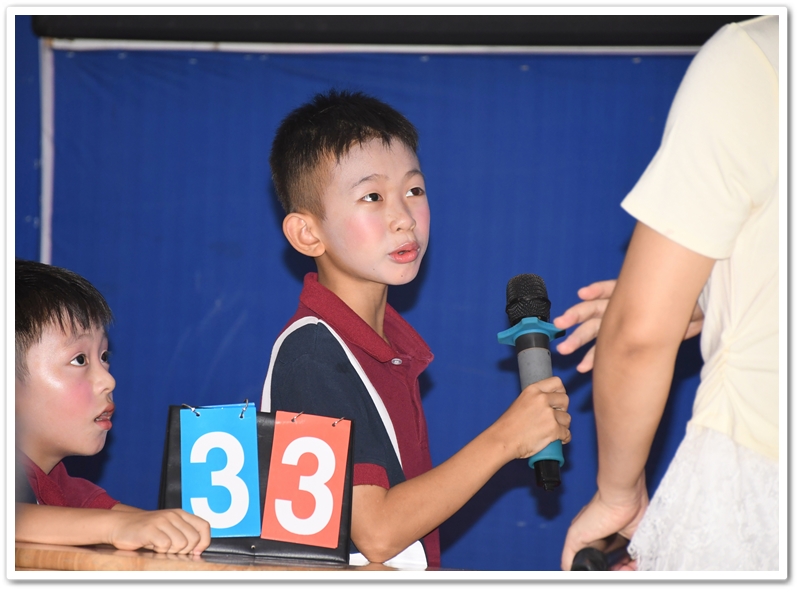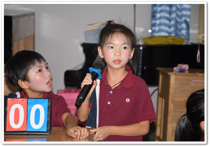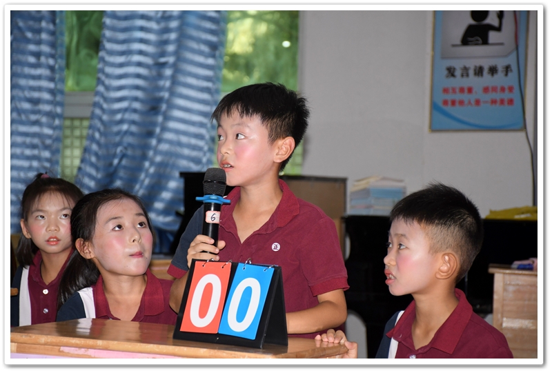 赛场上,小选手们个个全神贯注,反应敏捷。他们或凝神思考,或自信作答;团队成员间默契配合,互相鼓励。每当选手们准确流畅地回答问题,台下便响起阵阵热烈的掌声和加油声。整个赛场充满了积极向上、快乐学习的氛围。