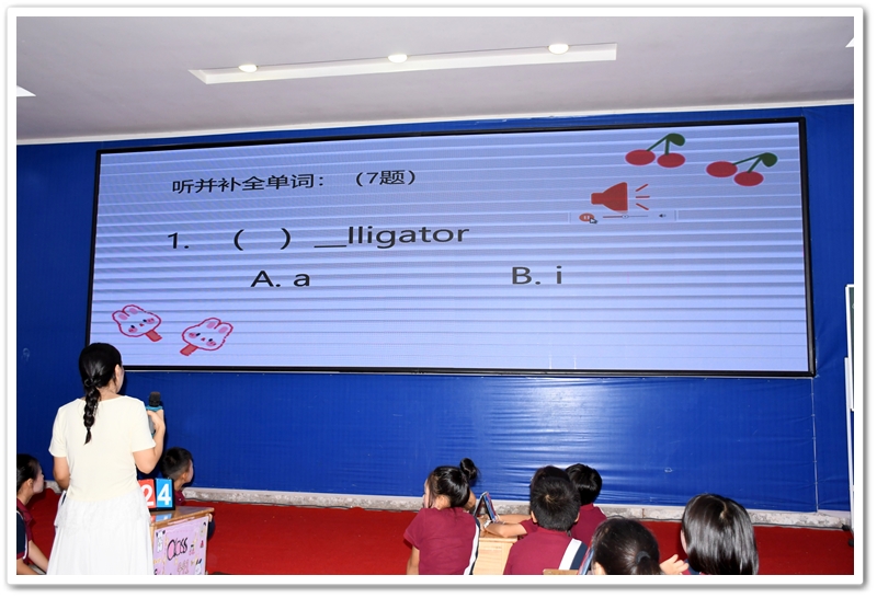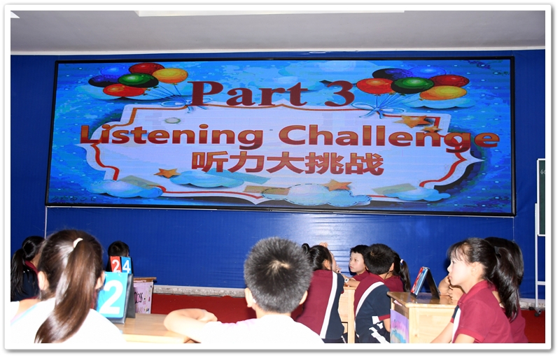 3. Listening Challenge 听力大挑战:此环节有四个部分:听并补全单词、听并补全句子、听并回答问题和英语歌曲接力。前三个听力部分的难度层层递进,充分锻炼和考验同学们的听力能力。而英语歌曲接力为本环节增添了不少趣味性,深受学生们的喜爱。