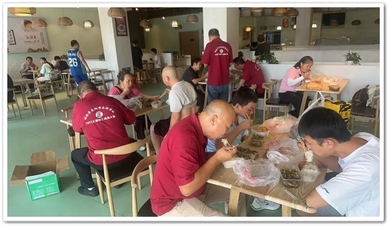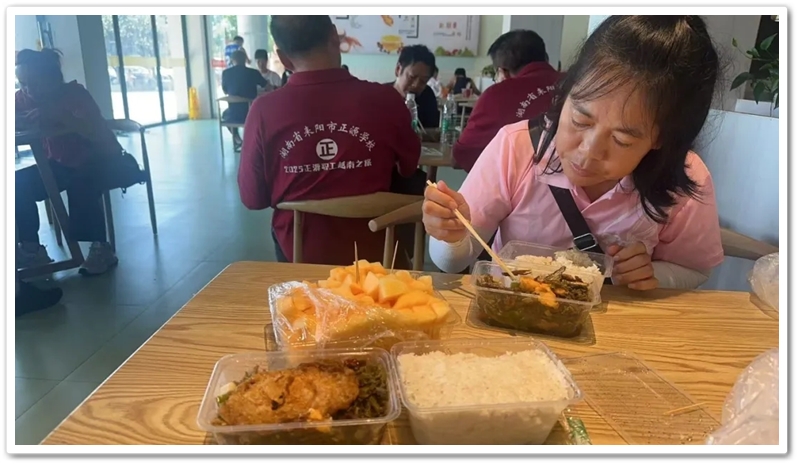 8月9日上午,校南门跃动着出发的喜悦。九时整,第一队十二人驾轻车奔赴广西。车窗外的青山如黛,车内的笑语如铃。午时,服务区的大厅里,正源特制盒饭的香气弥漫开来——金黄煎蛋覆着腊味,酸辣豆角点缀其间,熟悉的滋味熨帖了舟车劳顿,连路过的旅人也频频侧目:“这哪是寻常盒饭?分明是移动的盛宴!”