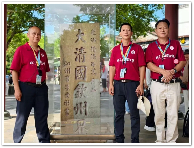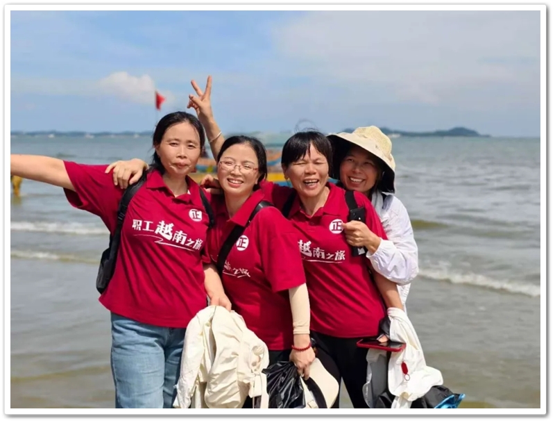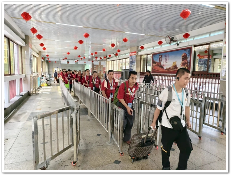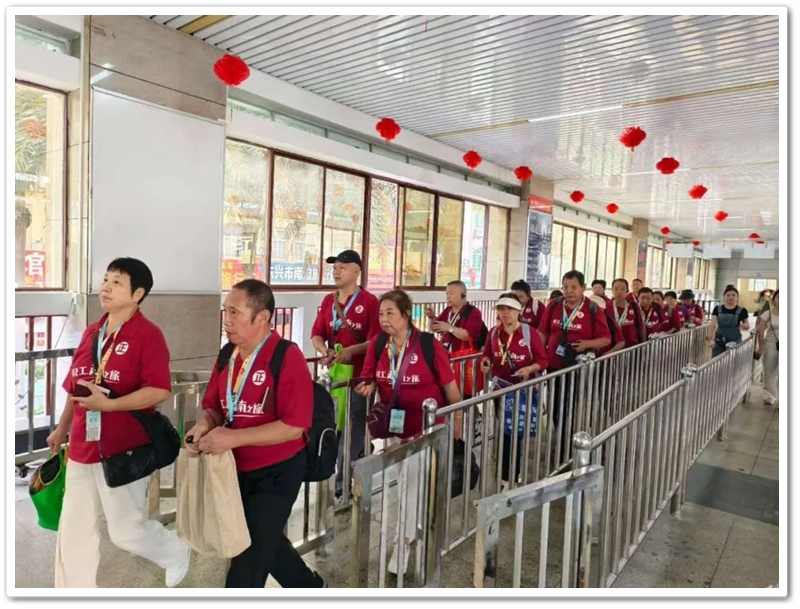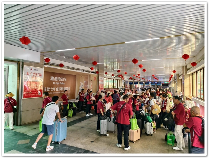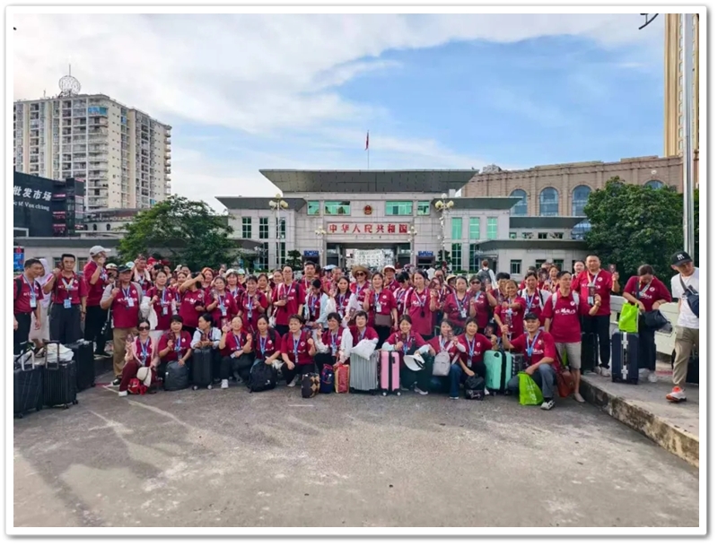 清晨的南宁火车站,阳光透过站台的玻璃幕墙,在地面投下斑驳的光影。候车椅上还留着早班旅客的余温,行李箱的滚轮碾过地面,发出细碎的声响。上午十点,正源职工一行75人拖着行李箱走出出站口,导游曾军举着挂有卡通公仔的伸缩杆在人群中格外显眼。他笑着帮一位老师提过沉重的行李箱:“阿姨放宽心,这趟行程我保准让大家玩得舒心!”众人到齐后,导游与大家简单寒暄了几句后,众人分乘两辆旅游车向东兴口岸驶去,车窗外榕树高大的身影掠过,一场期待已久的跨国之旅就此启程。