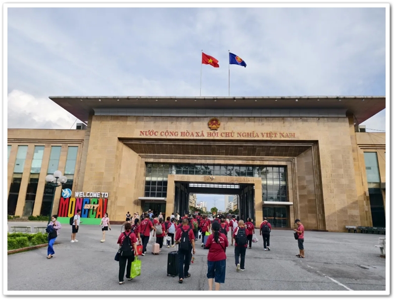 车子驶过北仑河大桥时,桥下的河水泛着翡翠般的绿,几只白鹭贴着水面掠过。对岸的越南芒街隐约可见,骑楼的廊柱涂着明黄的漆。下午四点整,带着对界碑的感慨,一行人抵达东兴口岸。红色的“中华人民共和国东兴口岸”十一个大字在阳光下格外醒目,对岸隐约可见越南芒街的建筑。大家按顺序排队,将护照递给边检官员,盖章的“啪嗒”声响起时,心里竟莫名有些激动。半小时后,双脚真正踏上越南土地,看着路边招牌上陌生的越南文字,听着耳边夹杂汉语的越南语对话,一种奇妙的感觉油然而生——我们真的来到了另一个国家?