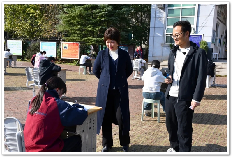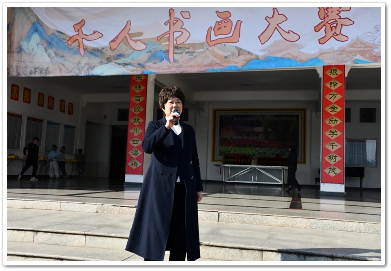 此时,罗校长正于大洋彼岸的美国正源教育集团出差,虽心系体育艺术节却未能亲临现场,特地委托夫人梁晓芬老师主持大局,代为传递对同学们的殷切鼓励与美好祝福。在昨日的开幕式上,梁老师已为大家捎来教育部《关于全面实施学校美育浸润行动的通知》的政策春风;今日的千人书画大赛现场,她又以“春华秋实” 与 “夏蝉冬雪” 的诗情画意,鼓舞同学们顺应时代节拍、拥抱美育滋养、陶冶高尚情操、畅享艺术熏陶。她寄语同学们:要学会用美的眼光审视世界,让内心愈发乐观豁达、心胸开阔;用悦耳音符协奏生命乐章的波折起伏,以美育润泽心灵沃土,用积极的生活态度塑造美好人生。