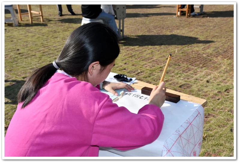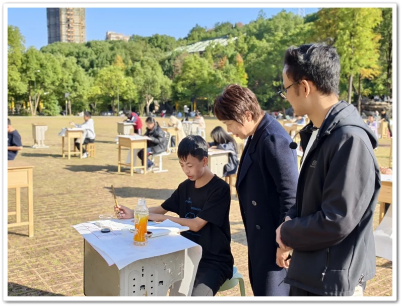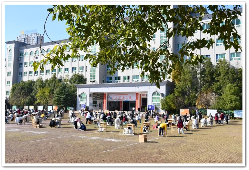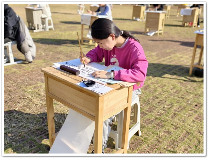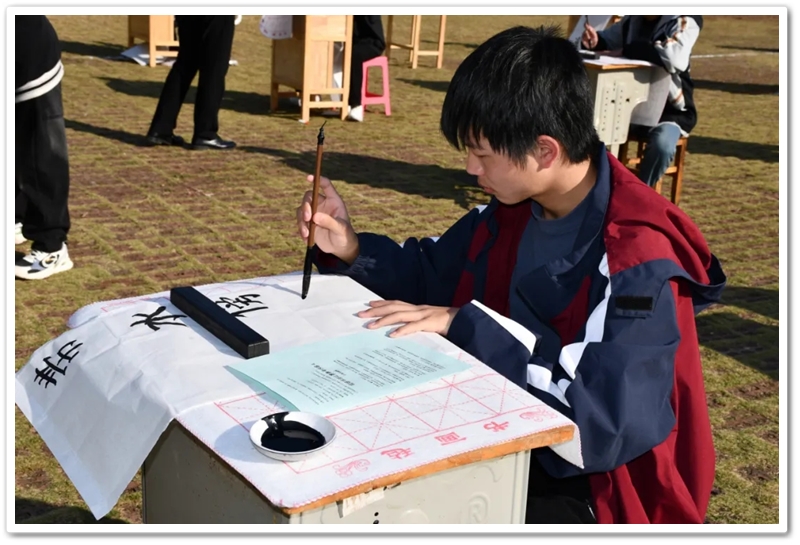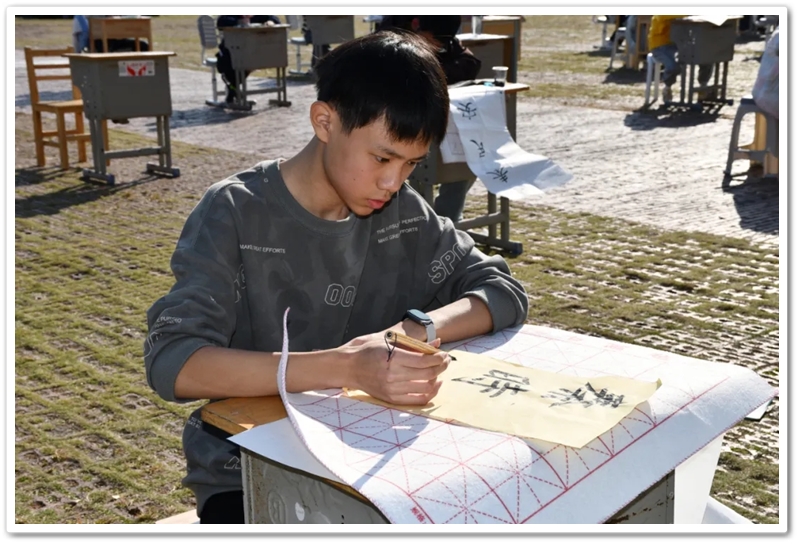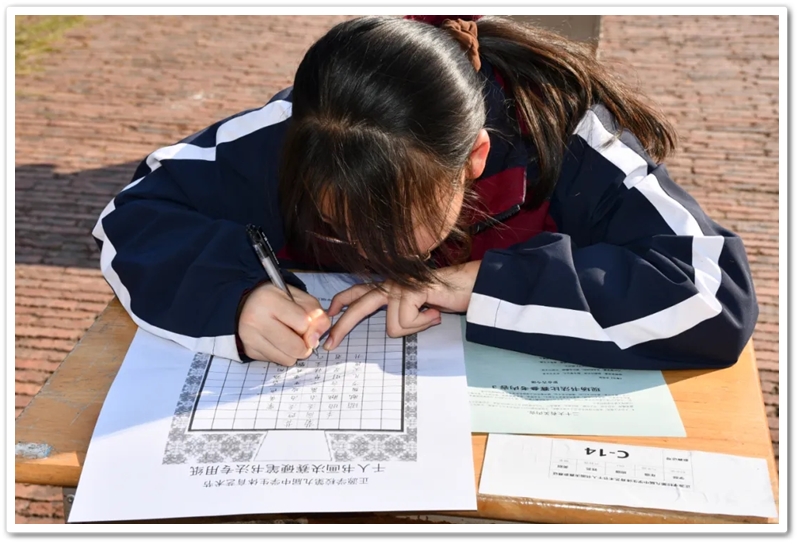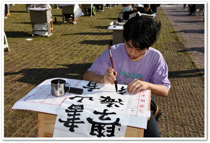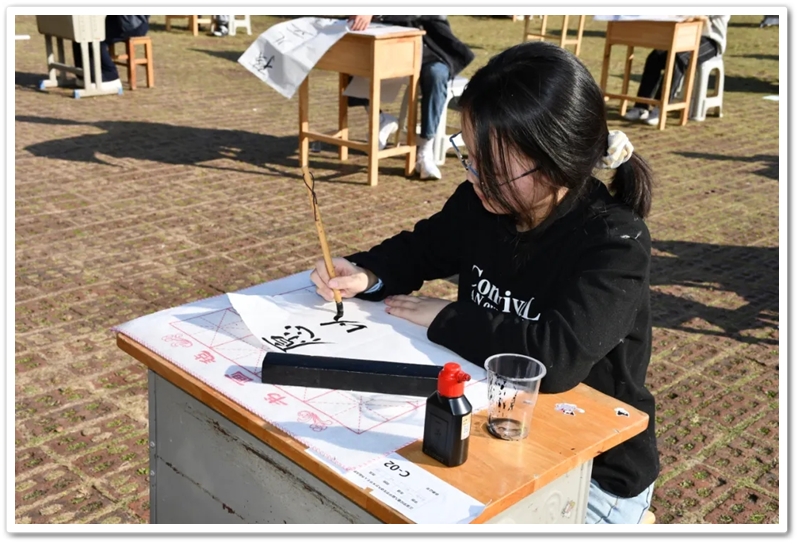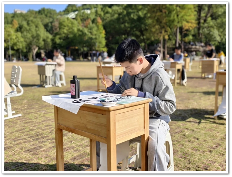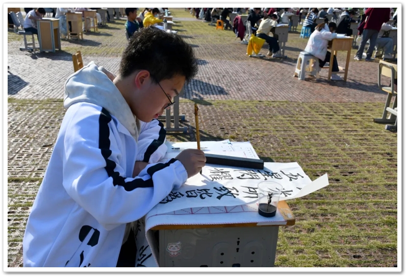 11月22日,第九届中学生体育艺术节进入第二天,正源广场艳阳高照、芳草如茵,整齐排列的桌椅星罗棋布,学子们兴高采烈汇聚一堂,翘首以盼的千人书画大赛如期而至。