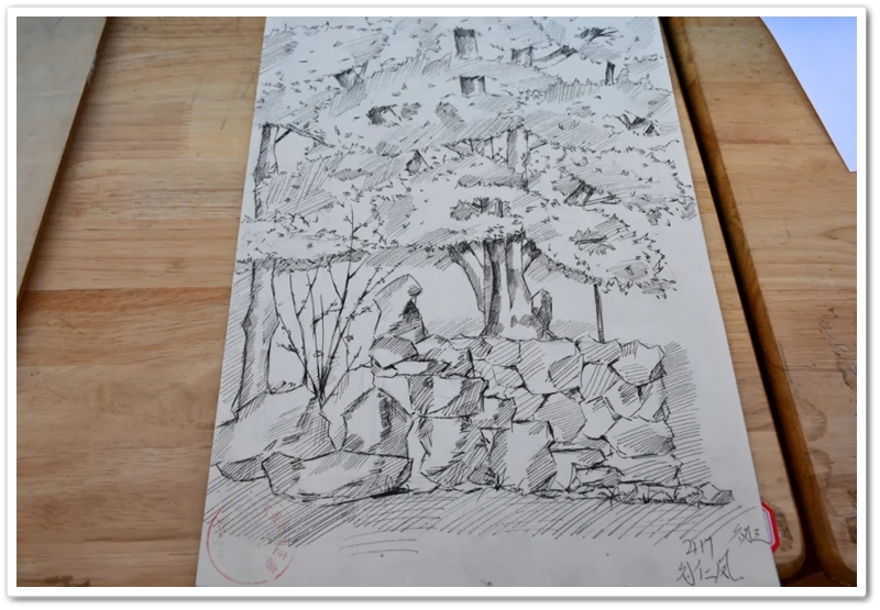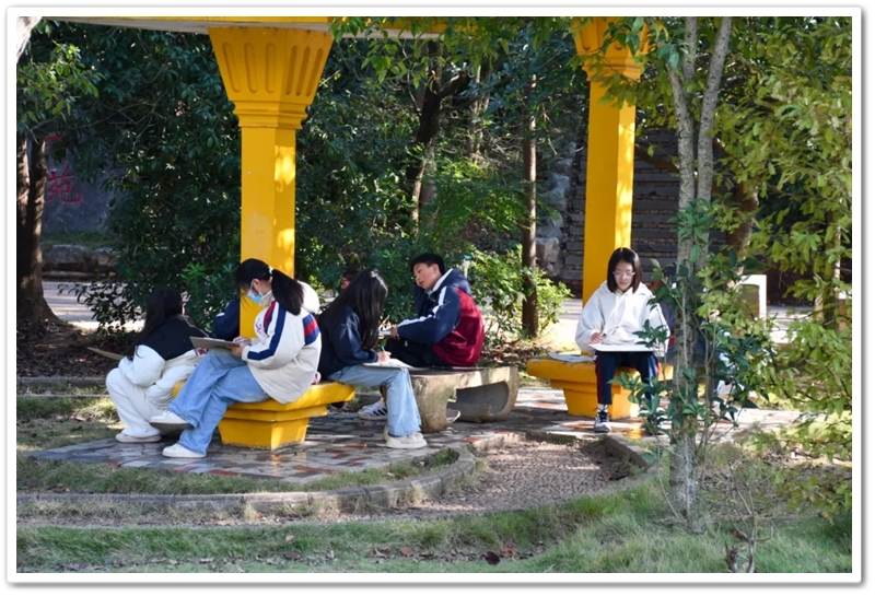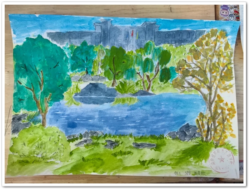 艳阳朗照,秋风拂面,同学们凝神静气,纷纷挥毫泼墨。