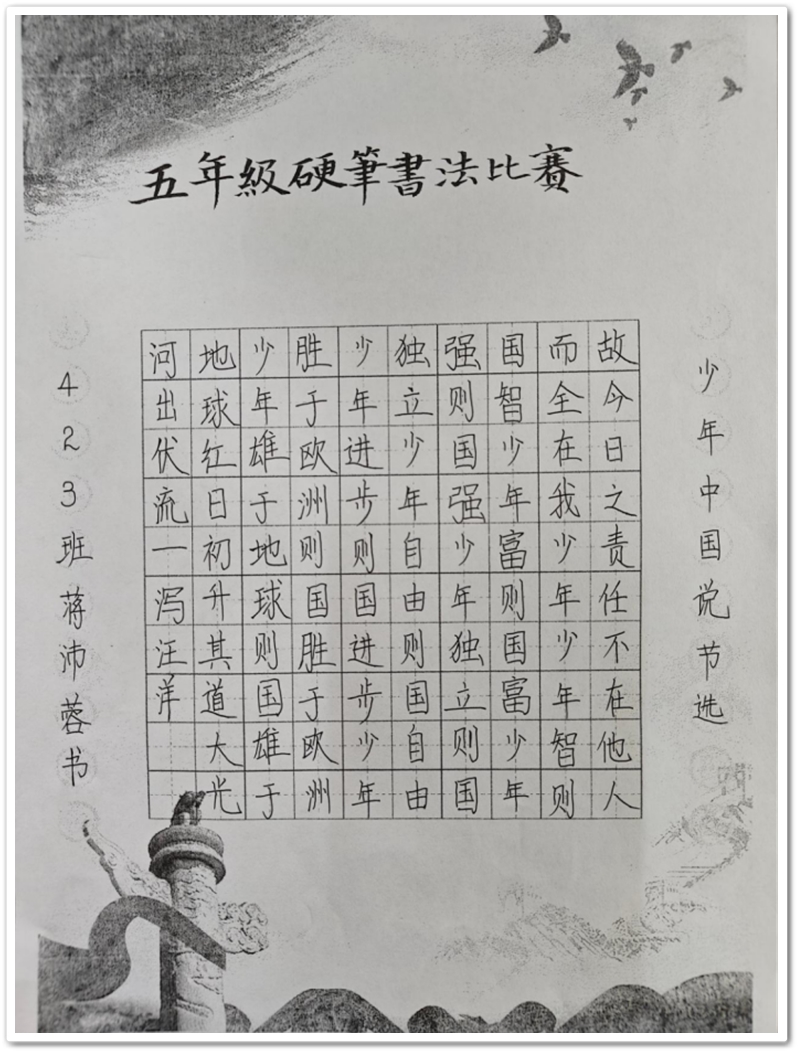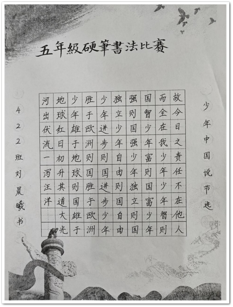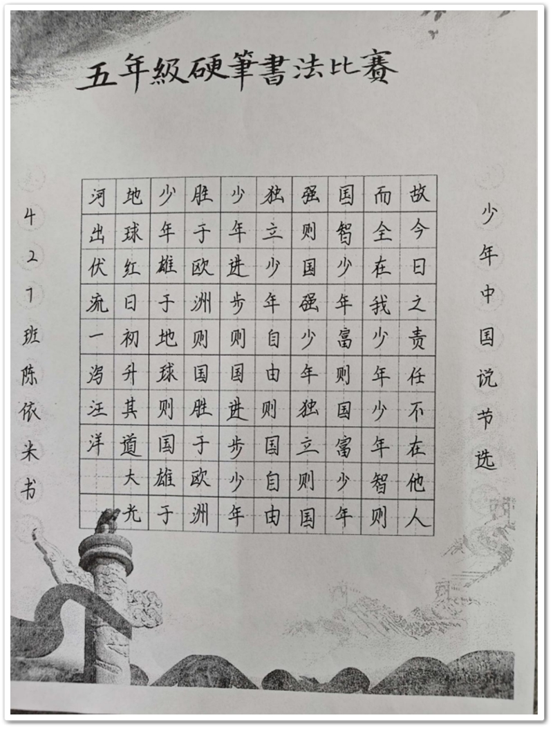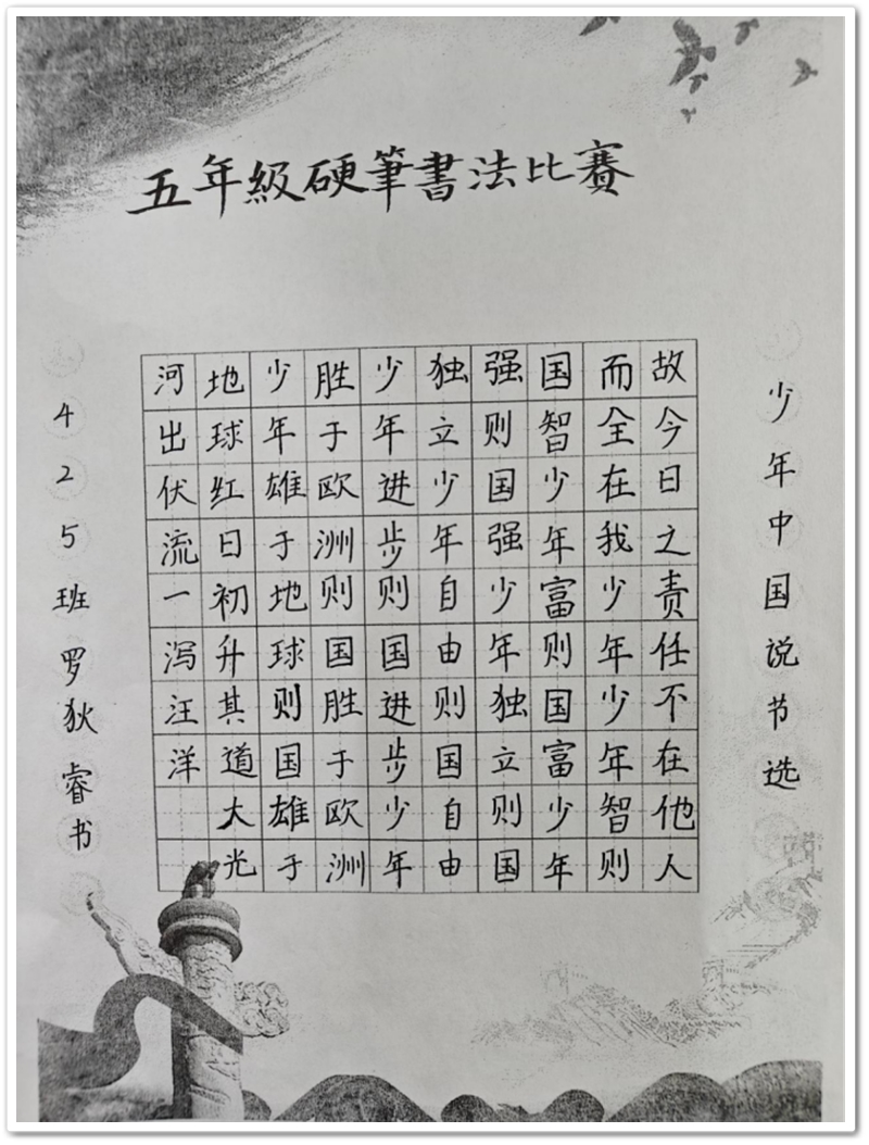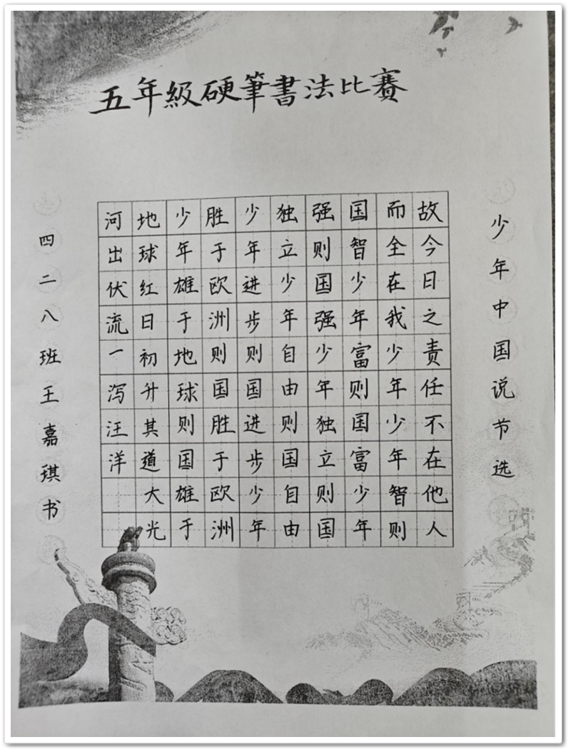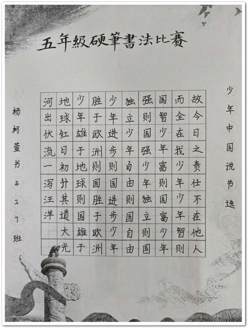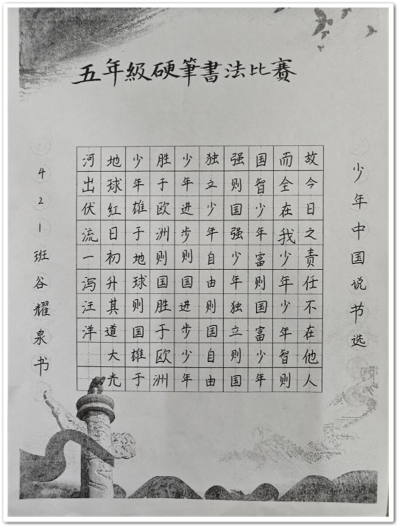 本次比赛以“规规矩矩写字,堂堂正正做人”为主题,面向全体五年级学生。