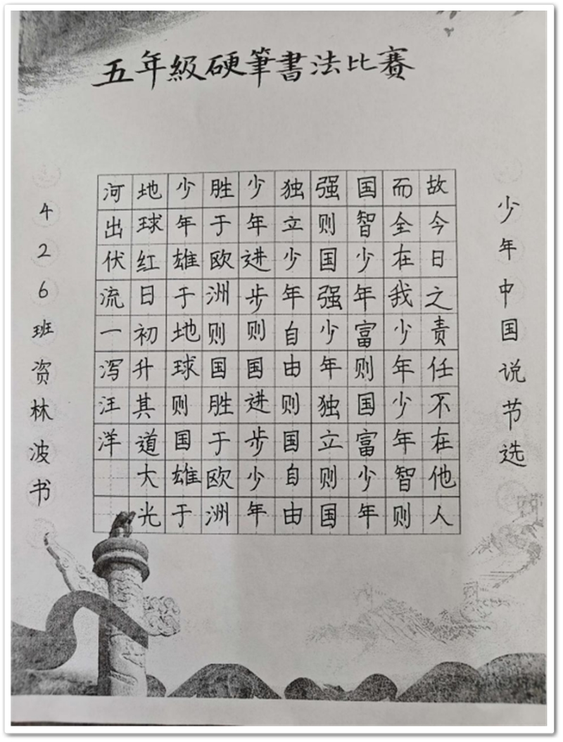 此次硬笔书法比赛,不仅为五年级学生提供了一个展示自我风采的平台,更是一次深刻的文化熏陶与技艺锤炼。它检验了学校书法教育教学的成果,激发了广大学生练习书法的热情,在校园内营造了“提笔即练字”的浓厚氛围,使“写好中国字,做好中国人”的观念深入人心。我们相信,这份对汉字书写的热爱与坚持,必将如涓涓细流,滋养孩子们的心灵,伴随他们在未来的学习与人生道路上,书写出更加灿烂辉煌的篇章。