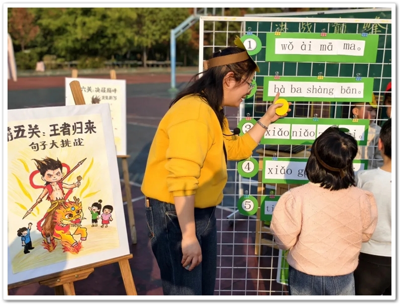 活动现场,随处可见温馨的画面:老师蹲下身与孩子平视交流,用手势帮助孩子理解发音要领;孩子在闯关成功后第一时间跑到老师面前分享喜悦;几个小伙伴互相加油打气,共同克服难关……这些片段拼凑出一幅生动的一年级学习成长图景。