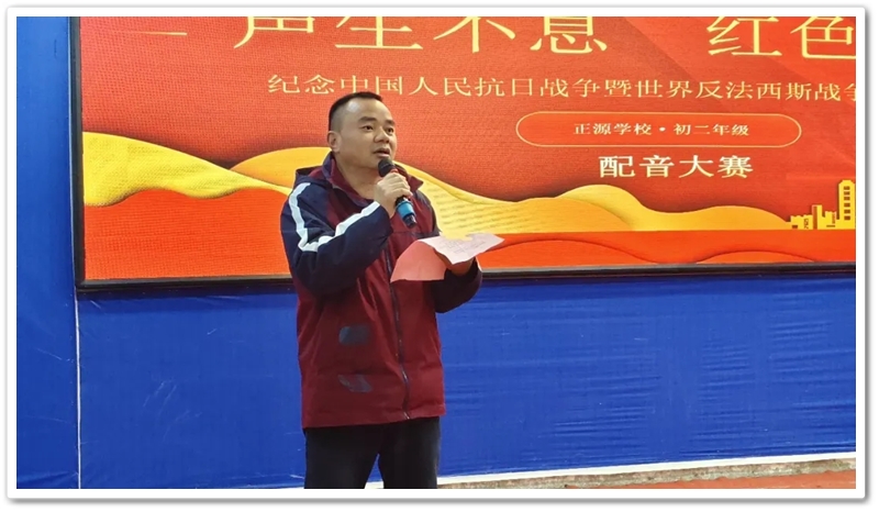 活动伊始,曹秋文主任登台致辞:“同学们,今天我们汇聚于此,不仅是为了一场声音的竞技,更是为了一次精神的洗礼、一次文化的传承”。他的话语掷地有声,带着年级主任特有的威严与关切,“每一段配音背后,都有同学们日夜排练的心血,你们的安静聆听,是对表演者最大的尊重;你们文明观赛的素养,是正源学子最好的名片。”