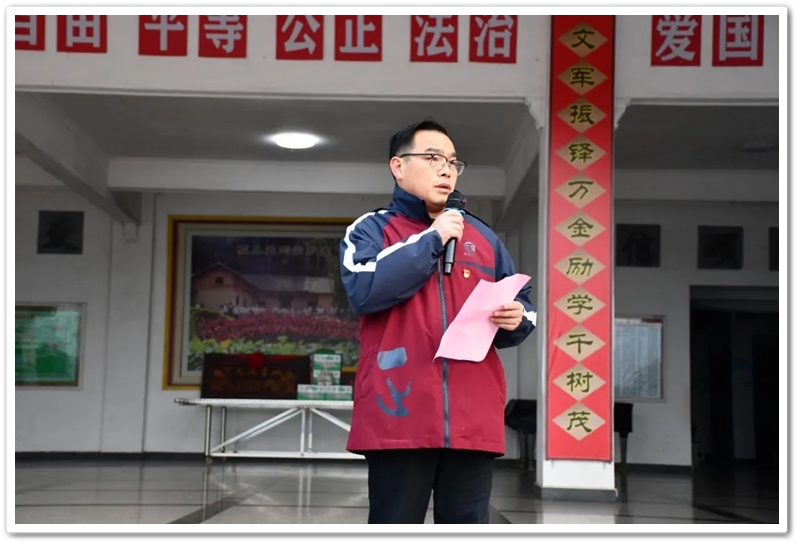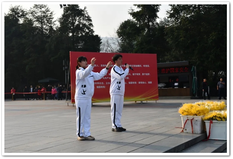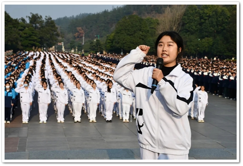 开班仪式在雄壮的红歌声中拉开序幕。“没有共产党就没有新中国……”全体师生齐声高唱,歌声嘹亮,响彻云霄,每一个音符都饱含着对党的无限深情与对历史的深切缅怀。随后,面对鲜红的旗帜,同学们举起右拳,庄严宣誓:“请党放心,强国有我!”八字誓言,字字千钧,是青春的承诺,更是时代的回响。那一刻,一张张年轻的面孔无比坚毅,一双双希望的眼睛闪烁着理想的光芒。