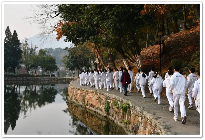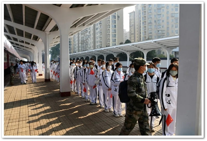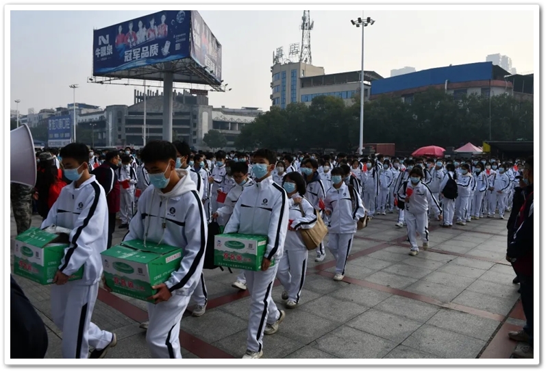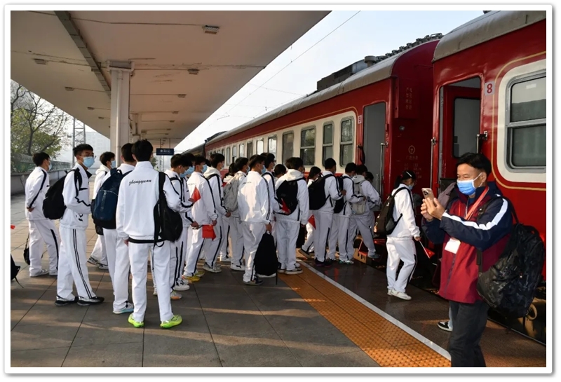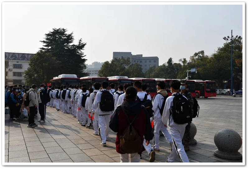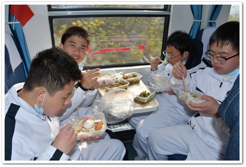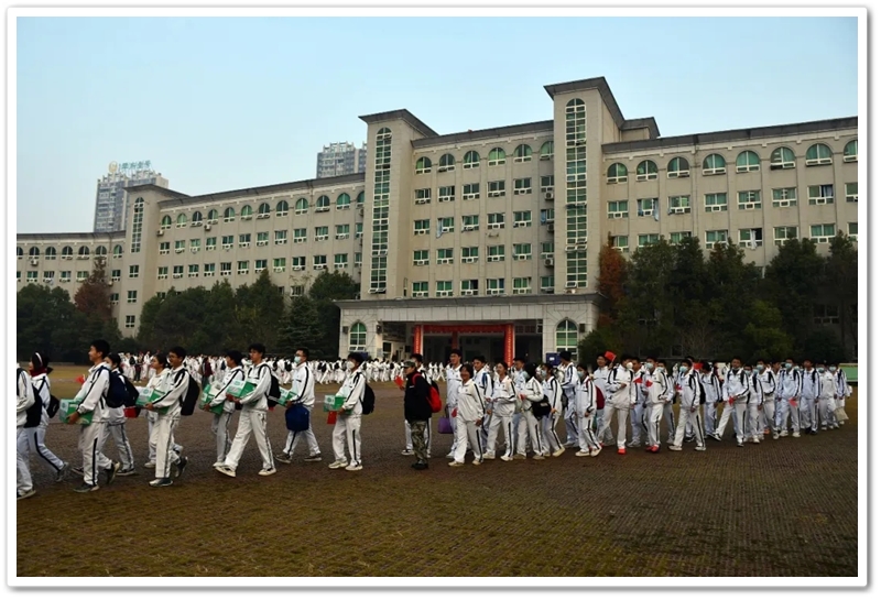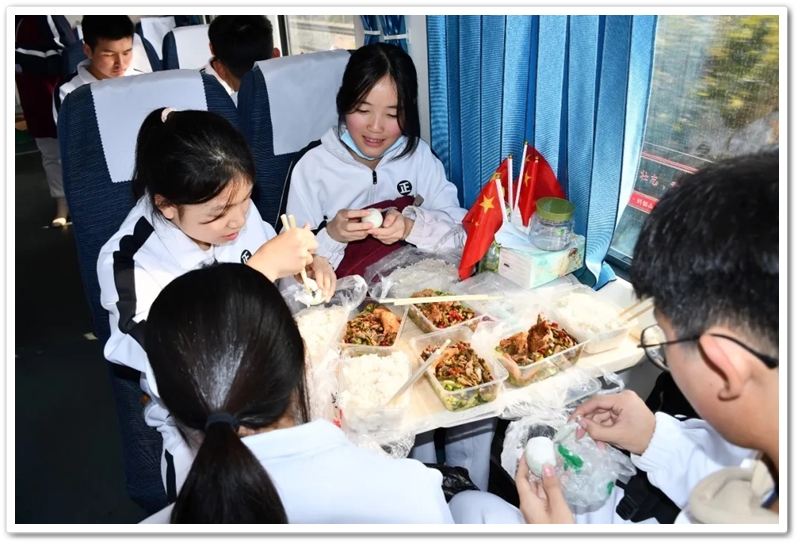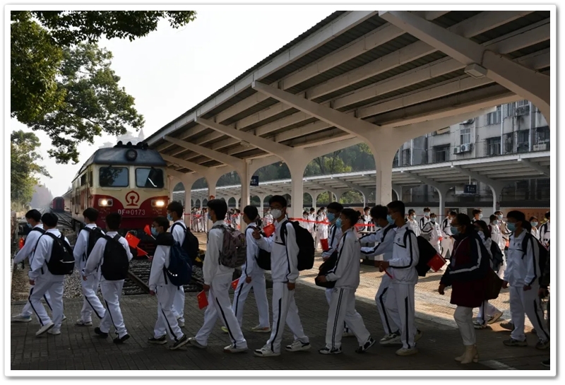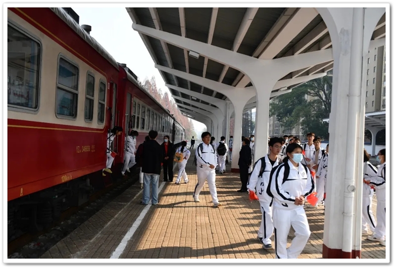 12月10日5点40分,天光破晓,晨星在肩。美丽的正源学校校园已经苏醒,蓄势待发之心驱散了微凉寒气,高一年级1423位学生已经起床,56位老师已经就位,第三食堂员工早已准备好了早餐和学生的中餐盒饭。6点40分,第一批翩翩少年就出发了;7点20分,第二批学生集合,经过简短动员讲话后,举行了授旗仪式,7点55分登车出发。满载青春身影的大巴车,从学校启程前往耒阳火车站。车轮滚滚,驶离熟悉的校园,向着“红太阳升起的地方”坚定前行,困倦烟消云散,嘹亮的歌声荡漾心头,“东方红,太阳升”“数风流人物,还看今朝”……我们一路向北。