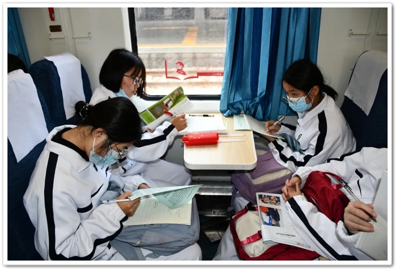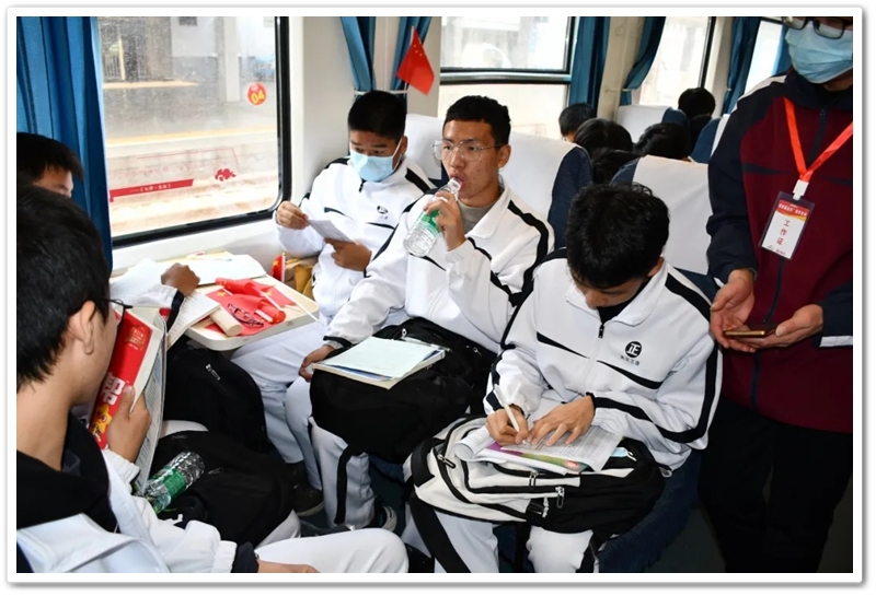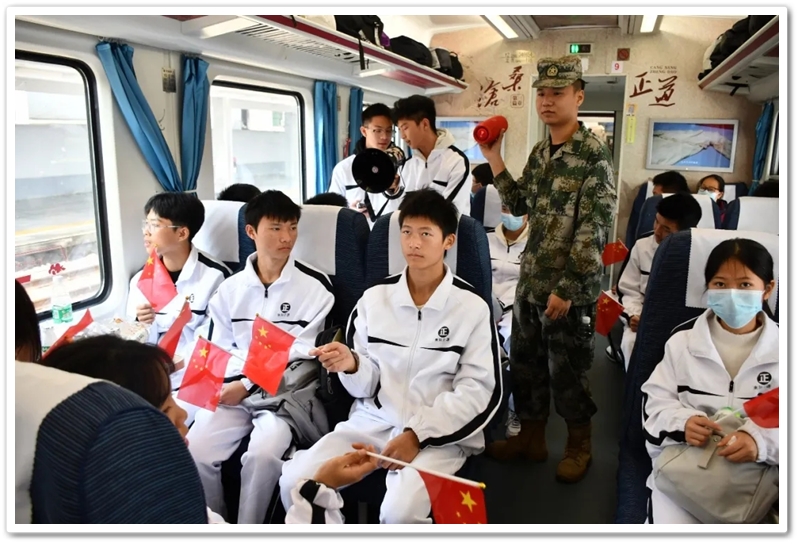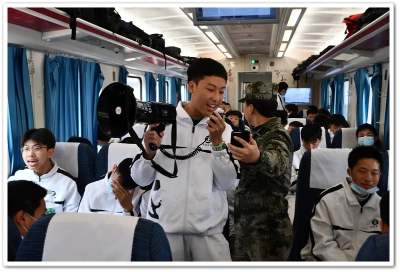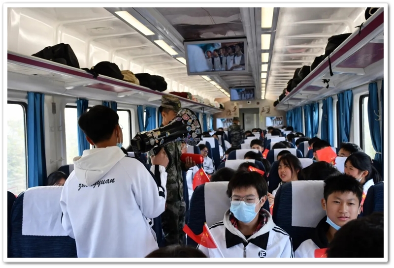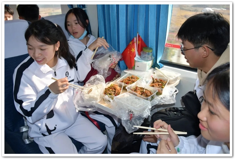 长达数小时的车程,不仅是地理空间的位移,更是历史纵深的心路。在“我的韶山行”专列上,我们温习誓词,齐背誓词,我们齐唱《没有共产党就没有新中国》,我们高歌《强军战歌》,我们勤奋努力……歌声在列车上飘荡,笔尖在作业上描画,青春的光芒溢满每一节车厢,奋斗的力量写满每一张稚嫩的脸庞。特别是第一批专列4号车厢,371班、372班和373班学生们精神饱满,严肃活泼,听从指挥,井然有序,得到了同行上级领导的高度赞扬;第二批专列356班至364班更是如此,列车工作人员说:“这批孩子不得了,不是在读书就是在写作业,第一次见到。”