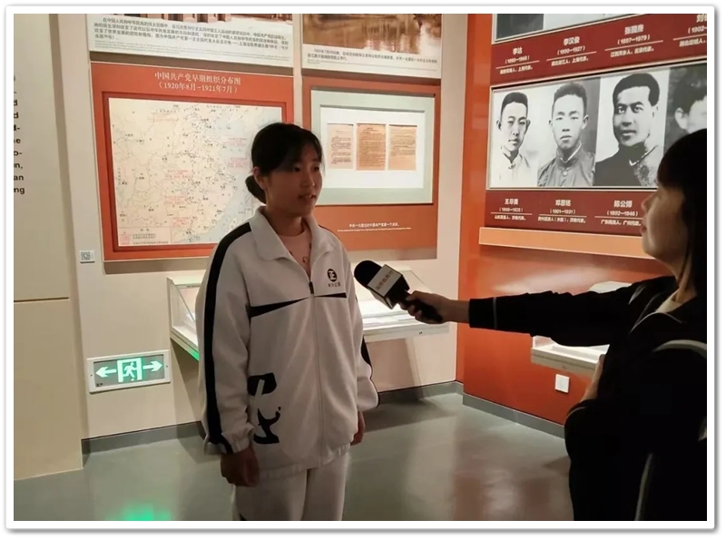 在参观毛泽东同志纪念馆时,我们遇到了湖南教育电视台的栏目组,栏目组的记者采访了360班两位同学,非常赞赏正源学校的学生。