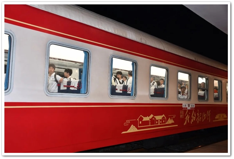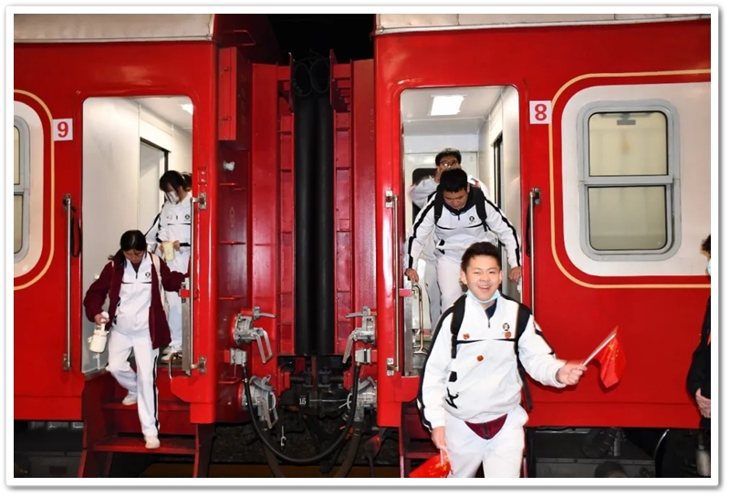 朝霞般辉煌灿烂的红色专列已停靠在站台,它载着少年们驶向历史,驶向来处,亦载着他们驶向朝霞般辉煌灿烂的未来。
