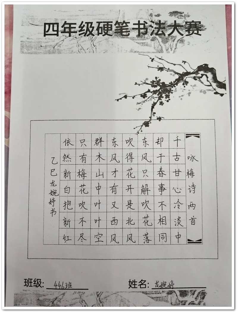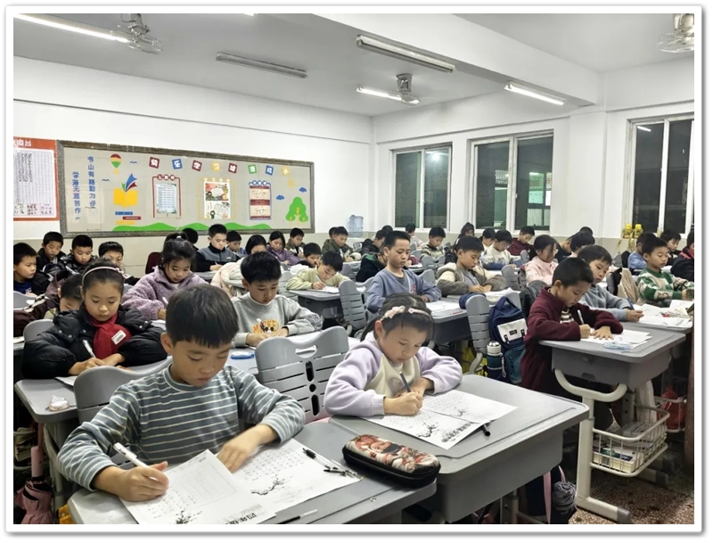 冬日的校园里,墨香悄然弥漫。12月7日晚自习,正源四年级硬笔书法比赛在各班教室如期举行,三百余名同学手握笔杆,在洁白的A4纸上书写汉字之美,让传统文化的种子在笔尖悄然绽放。