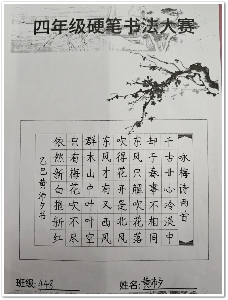 四年级硬笔书法大赛获奖名单