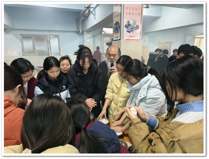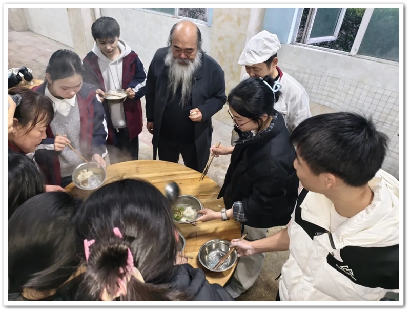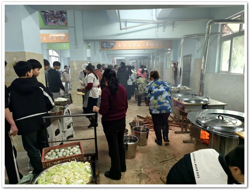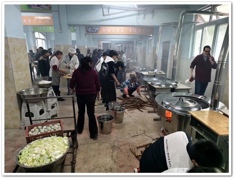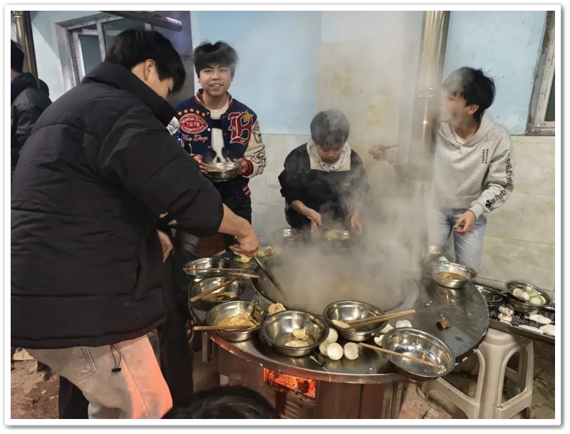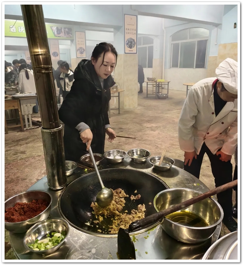 今天的烹饪课堂,罗校长亲自担任授课老师。3月9日生火试灶时,也是罗校长亲手执勺提前“备课”,用菜籽油、葱姜蒜佐以辣椒粉、八角粉、胡椒粉及永兴酱,烹制出一桌香喷喷的家常饭菜。