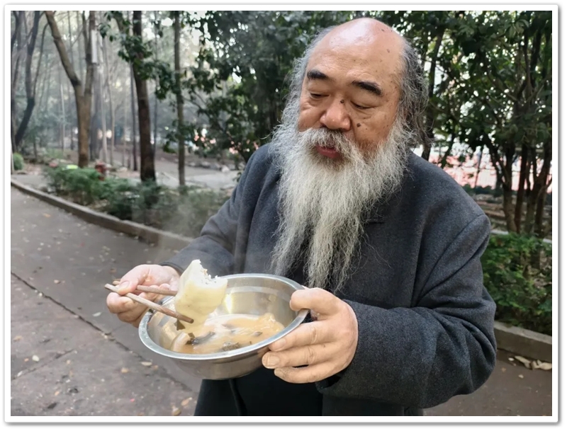 “你们看咯,等下一煮熟,又吃到了米,又吃到了肉,哎呀呀……”
