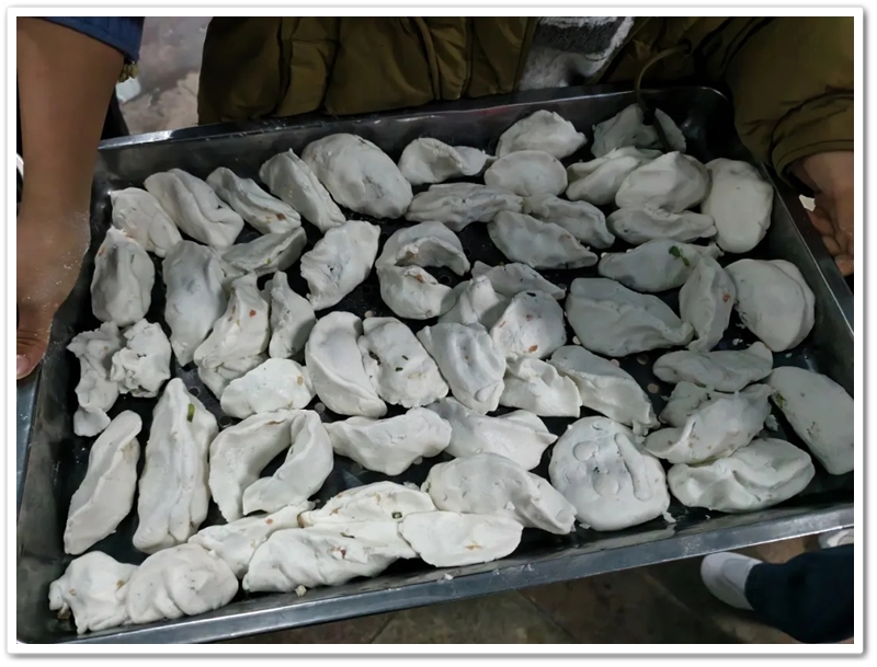 “注意皮不能压得太薄,这是米粉,不是面粉,薄了容易漏肉馅。”