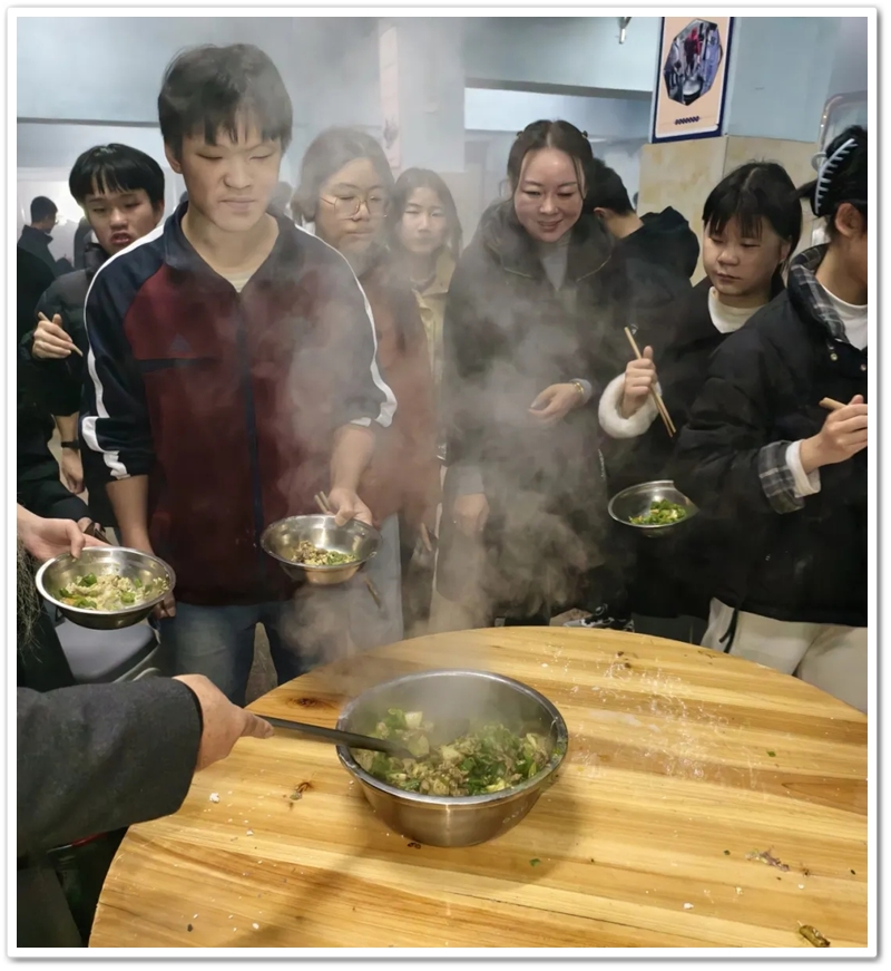 烹饪课堂里,三五个心灵手巧的同学技高一筹,成了全场“最靓的仔”。“吱啦吱啦”烈火烹油间,他们胸有成竹地挥舞着钢勺铁铲,指挥队员们打蛋液、倒青椒、舀清水、端菜盆……哗啦哗啦的锅勺交响乐中,葱花蛋、辣椒炒肉一碗碗接连出锅。多数同学尚在亦步亦趋的初级阶段。手忙脚乱间,有“粑粒”包得千姿百态,下到锅里滚上两滚就漏肉馅的;也有柴火过旺,蛋炒饭一边出锅一边肉眼可见地由浅黄变金黄,金黄变焦黄的;有荷包蛋煎成鸡蛋饼的,也有添柴火添成“包青天”的……