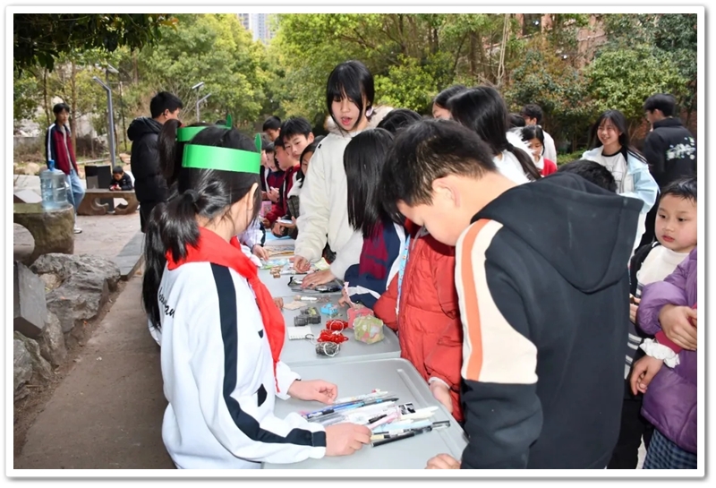 3月14日下午,三、四年级的同学们以“旧物新生,爱心传递”为主题,开启了一场充满温度的资源共享行动。大家纷纷带来家中闲置的文具、书籍、玩具,在西山下和怡心读书堂旁搭建起“爱心交换角”。孩子们化身“小小雷锋”主动整理、分类物品,耐心向伙伴介绍每一件旧物的故事,用自由交换、无偿捐赠的方式,让闲置物品重新焕发价值。