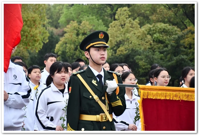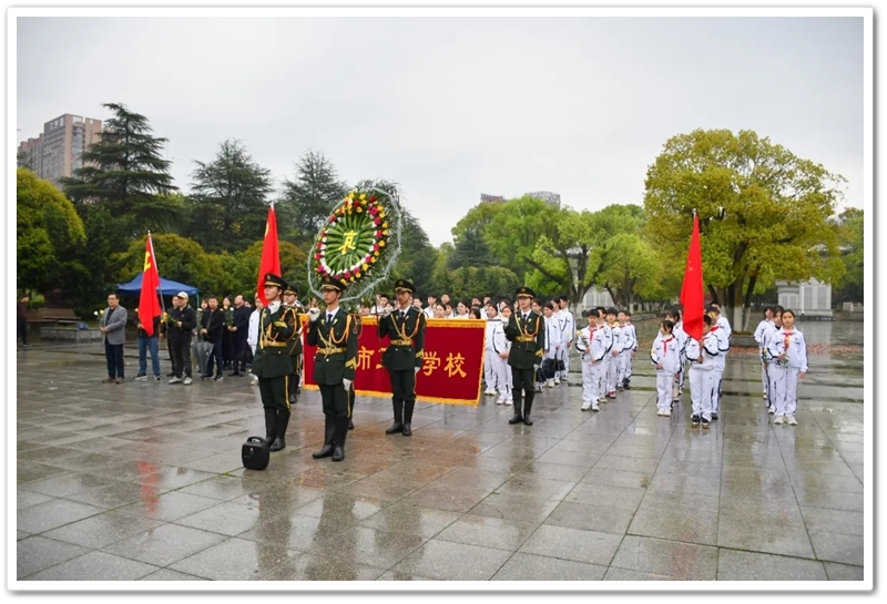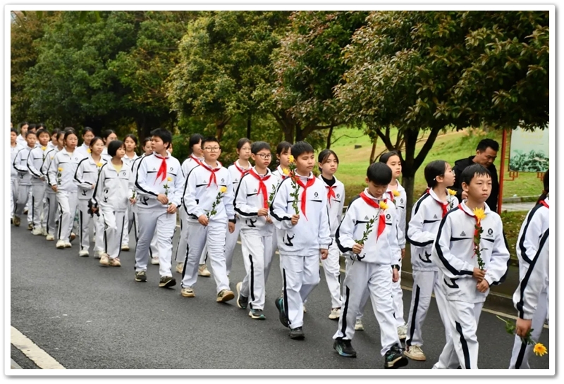 清晨7:30,参与活动的师生在学校操场整齐列队,清点人数、强调纪律礼仪后,统一乘车前往烈士陵园。8:00,全体师生抵达烈士陵园,有序列队、整理仪容,以肃穆庄重的姿态,开启祭扫仪式。