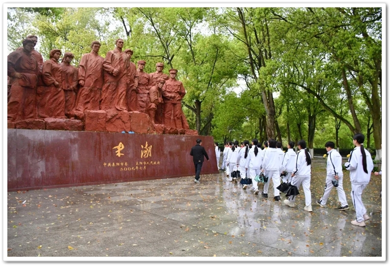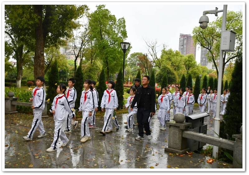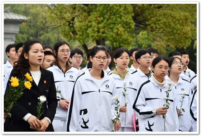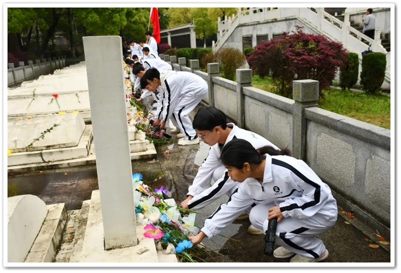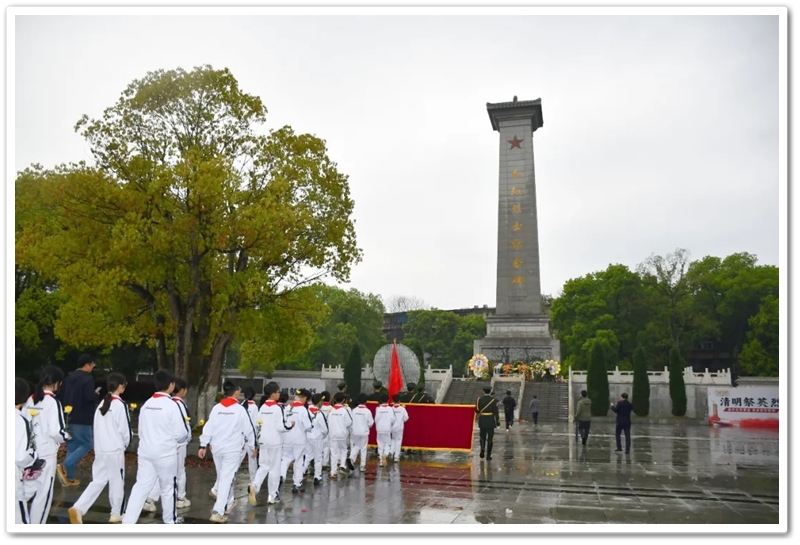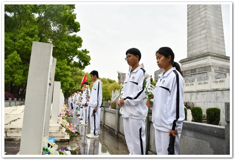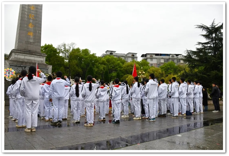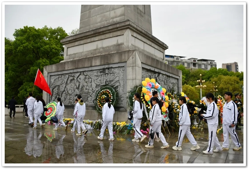 宣誓结束后,全体师生绕行纪念碑,依次敬献鲜花。大家怀着崇敬之心,缓步来到一座座英雄纪念碑前,肃立驻足,依次为每位革命先烈敬献鲜花,寄托深切哀思。随后认真观看耒阳英烈墙,在松柏掩映的英烈土地上,追思革命先烈的崇高精神,感悟幸福生活的来之不易。