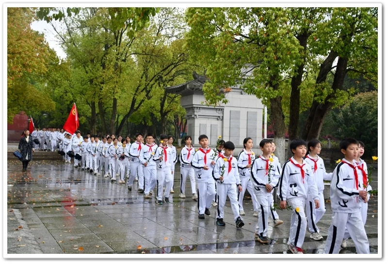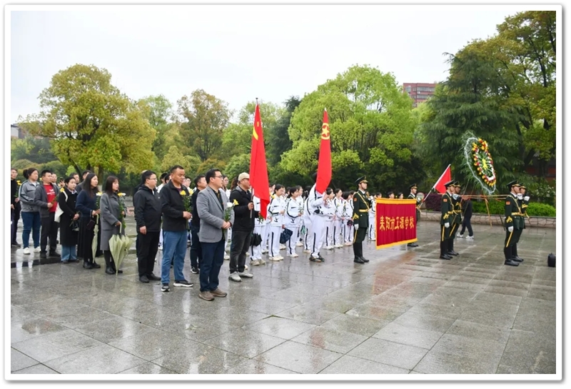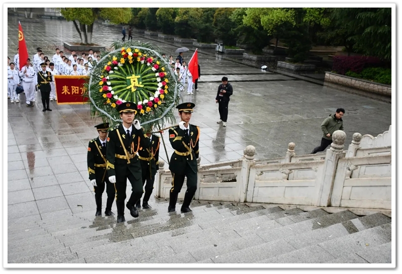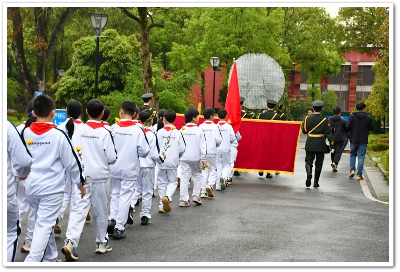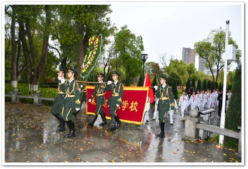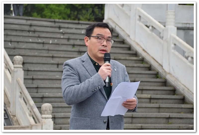 学校党支部毛小波书记在仪式上发表讲话。他深情回顾了耒阳这片红色热土上,从湘南起义到井冈山斗争,从抗日烽火到解放征程,无数革命先辈前赴后继、英勇奋斗的光辉历史,深切缅怀了伍若兰、邝鄘、李天柱等耒阳籍革命先烈的英雄事迹。毛书记强调,革命先烈的精神是取之不尽、用之不竭的精神财富,传承红色基因,要坚定理想信念、牢记初心使命;他寄语全体共青团员与少先队员,要从先烈手中接过接力棒,将爱国情、强国志转化为报国行,努力学习、勇担使命,成长为担当民族复兴大任的时代新人。