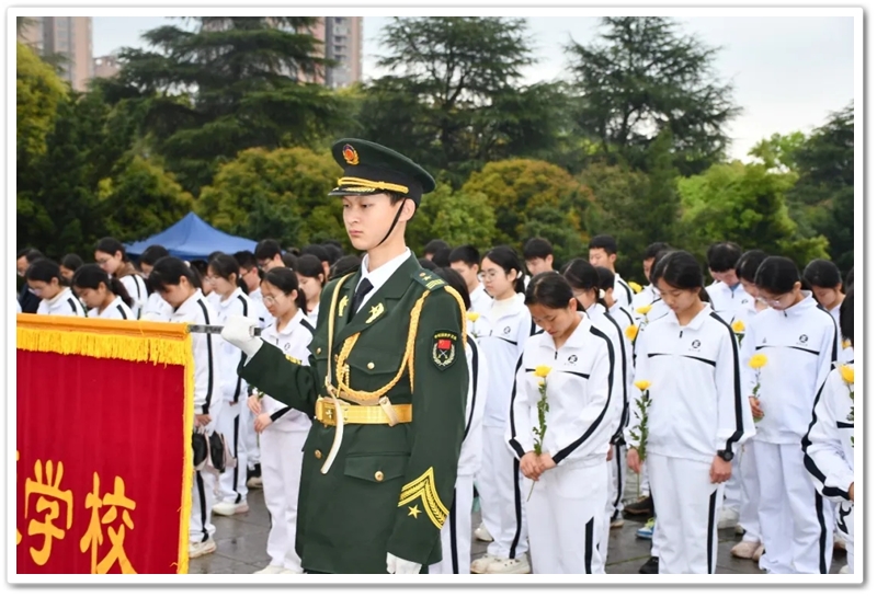 仪式在庄严的《中华人民共和国国歌》声中拉开帷幕。全体师生肃立,向革命先烈默哀1分钟,深切缅怀为民族独立、人民解放和国家富强英勇献身的革命先烈。随后,学校国旗护卫队队员迈着整齐稳健的步伐,抬着花篮缓步走向烈士纪念碑敬献花篮,全体师生行注目礼,向革命先烈致以最崇高的敬意。