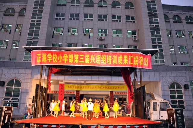 6月30日晚,我校小学部兴趣小组培训成果汇报演出在学校广场隆重举行。这次演出租用了文化馆的演出专用车及灯光设备。徐小学一、二年级在教室观看现场直播外,小学部其他年级师生及部分家长在广场观看了演出。这次汇演共有20个节目,反映了我校丰富多彩的课外活动。