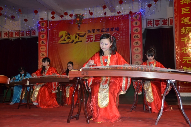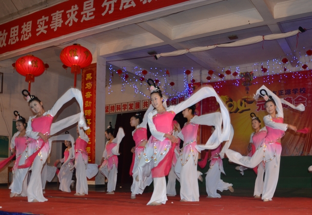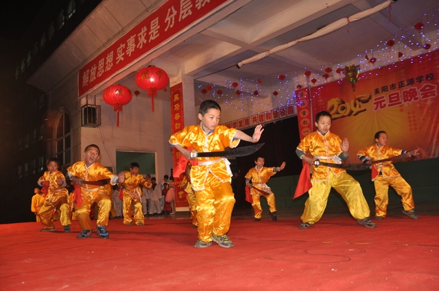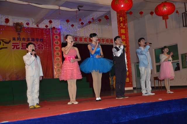 在罗校长的简单致辞后,晚会在雄壮的音乐序曲中拉开帷幕。顿时,舞台前的一炷炷烟花迸发出耀眼光芒,五彩缤纷,美丽绚烂。首先上场的是“龙狮·武术”节目,一条金龙舞出各种造型,让人目不暇接;两头雄狮跃上飞下,身姿矫健;长棍班棍到地裂,大刀班刀飞眼迷。更有拳术班,男生女生个个英姿飒爽,人人身手敏捷,出拳有千钧之力,跺脚如霹雳有声。双簧《贺新年》惟妙惟肖,让人忍俊不禁;古筝《渔舟唱晚》清韵悠长,余音绕梁;舞蹈《桃夭》清新靓丽,风姿卓雅;校园情景剧《为了谁》再现人民教师学生至上、公而忘私的高尚情操催人泪下;小学一年级的舞蹈《我很喜欢你》把孩童们的天真、稚气表现得淋漓尽致,小学三年级的舞蹈《兔子扬眉》则把一群机灵、智慧,智擒大灰狼的全新的兔子形象展现在观众面前。校园小品《正源超级中学生》、英语话剧《Enjoy English enjoy myself》、朗诵《正源,我们的家》等节目,热情讴歌了正源学校良好的学生精神风貌,优异的办学业绩,广泛的社会影响,以及学生们对学校的感激和赞美之情。
