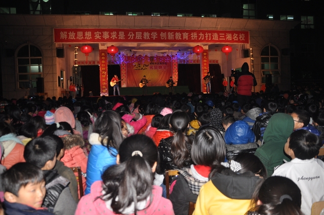 12月28日晚,学校广场人头攒动,一万四千多名学生和教职员工齐聚一堂,喜迎元旦,隆重而热烈的文艺晚会在这里举行。