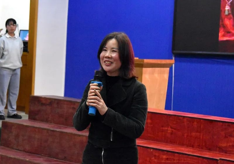 初中部英语教研组长刘静也被赛场的气氛深深感染,在作总结发言时,情不自禁地哼起了《You are beautiful》。并且大声点赞:You’re wonderful!还带着大家用《You are beautiful》的曲调唱起了You’re wonderful的歌词,We’re wonderful,We’re wonderful,We’re wonderful,it’s true。场面一片和谐温馨!刘老师告诉学生:Music is a very nice thing,它能make us happy;reduce our pressure;help us relax;make us be in a good mood。唱英文歌可以帮助我们练习听力,大大提高英语水平,所以大家一定要sing English songs more often。