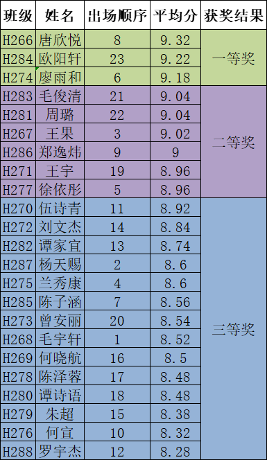 准高一年级“学雷锋”主题演讲比赛获奖名单